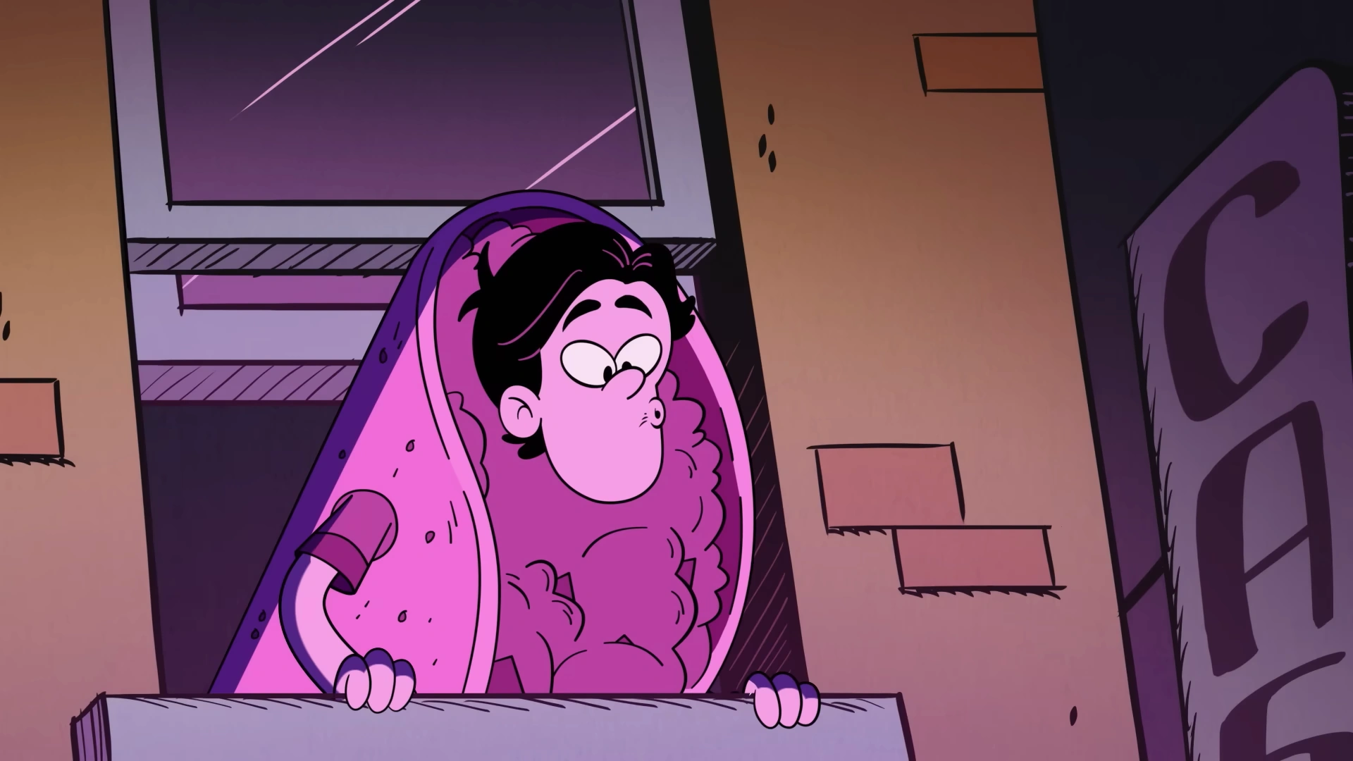 Still wanting to do something special for her first Halloween in the city, Ronnie Anne decides to call Sameer and learns that there's another party going on at the skate park. Thinking this isn't a costume party either, the girls throw their damaged costumes in the dumpster. Unfortunately, when they arrive at the skate park, the bouncer informs them that it is a mandatory-costume party, and when they try telling him that they're dressed as mimes, he tells them that mimes aren't allowed either. The girls are forced to get their now-smelly costumes out of the dumpster so they can be allowed into the party. However, shortly after catching up with Sameer, Sid finds a rat crawling about in the back of her lobster costume. As Sid flails about in a panic, she and Ronnie fall into the half-pipe and then fly pretty high upwards before falling back down, destroying their costumes and getting them kicked out of the party (the rat is allowed to stay).